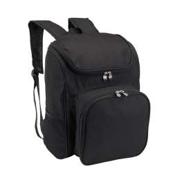Incluye un compartimento principal isotérmico con cremallera. También cuenta con un bolsillo frontal con cremallera que contiene cubiertos (mangos de PVC).