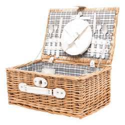 Panier pique-nique en osier KINGS PARK pour 2 personnes: comprenant des couverts en acier inoxydable avec poignées en plastique, des assiettes en céramique, des verres à vin, des serviettes et un sommelier, avec poignée et bouchon à vis