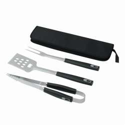 Incluyen una spatula, un tenedor para carne y una pinza. Todo en un estuche resistente con cremallera y asa.