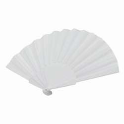 Éventail plegable con diseño práctico. Su mango está hecho de plástico resistente y las varillas son de plástico recubierto de poliéster reciclado.