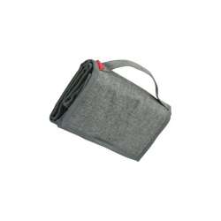 Bolsa isotérmica plegable y ultra compacta en tejido gris jaspeado.