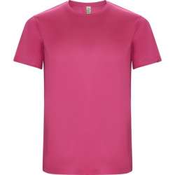 Camiseta técnica de manga corta en tejido de poliéster. Cuello redondo y detalles en las mangas. Ideal para actividades deportivas.