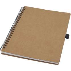 Cuaderno A5 con espiral y cubierta de cartón reciclado.