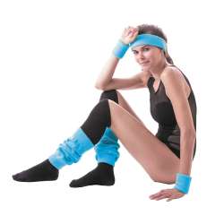 Conjunto de diadema y muñequeras de esponja en color azul neón.