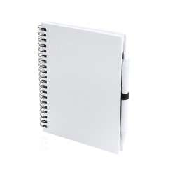 Dispone de 70 hojas lisas y un soporte para el bolígrafo.