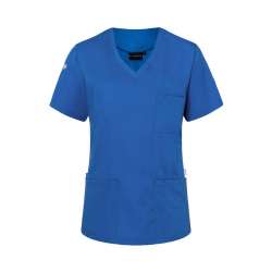Diseño con cuello en V. Ideal para los sectores de la salud y la belleza.