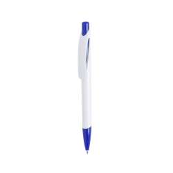 Bolígrafo de pulsar bicolor con accesorios de colores vibrantes y punta a juego. Cuerpo blanco. Clip curvado y original. Tinta azul.