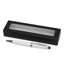 ¡Prepárate para impresionar! Este bolígrafo cuenta con una mina de gran capacidad y un práctico embout para pantallas táctiles. Su elegante acabado laqueado imita el estilo de un piano, realzado con detalles decorativos en plata.