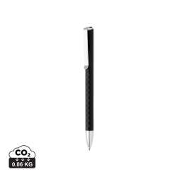 Bolígrafo retráctil de plástico con clip metálico y acabado en textura de rombos.