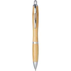 Bolígrafo retráctil con cuerpo de bambú. Detalles en clip cromado y acabados en plástico ABS. La tonalidad del bambú puede variar, lo que añade un toque único a cada pieza.
