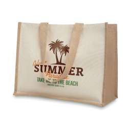 - Sac de compras fabricado en yute laminado - Parte frontal de tela resistente - Asas largas de algodón para mayor comodidad - Ideal para compras diarias y uso versátil - Diseño práctico y funcional - Perfecto para llevar en el coche o en el bolso