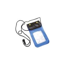 Saco impermeable en PVC transparente y azul.