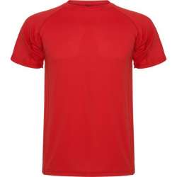 Camiseta técnica de manga corta raglán, con cuello redondo y costuras laterales. Composición: 100% poliéster, 150 g/m².