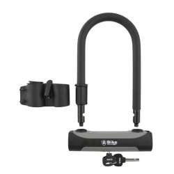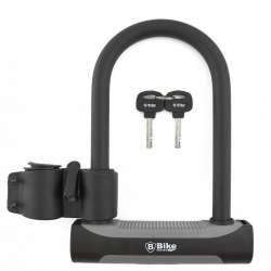 Sólido candado en U de acero, ideal para asegurar su bicicleta. Práctico y robusto.