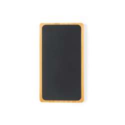 Batería externa de 5,000 mAh, fabricada en bambú con un elegante acabado negro.