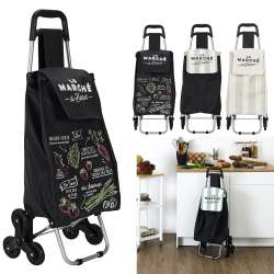 El carro de la compra bistro de 6 ruedas es la herramienta perfecta para sus compras. Su diseño inspirado en los bistrós, con coloridos motivos gourmet, añade un toque simpático a tu día a día.