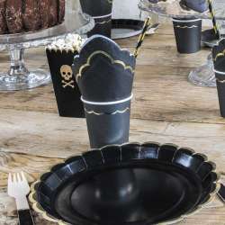 GOBELETS FESTONNES 200ML NOIRS Y ORO X 8