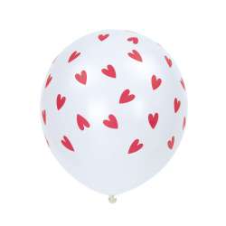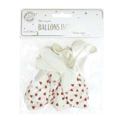 BOLAS DE BAUDERUCHES BLANCAS CON CORAZONES ROJOS X 6