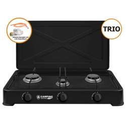 Cocina de gas de 3 quemadores con manguera de conexión y reductor de presión. Perfecta para tus actividades al aire libre.