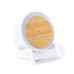 Esta lámpara ofrece varias funciones: altavoz Bluetooth, cargador inalámbrico y una potente luz LED. Su diseño moderno combina bambú y ABS, aportando un toque elegante a cualquier espacio.