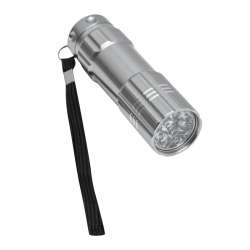 Lampe de poche DEL POWERFUL: 9 niveaux d´intensité, DEL blanches, bouton marche/Arrêt et dragonne, dans boîte cadeau