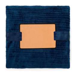 Manta de poliéster de 240g/m2, suave y cálida, disponible en varios colores, presentada con cinta y tarjeta en bolsa individual.