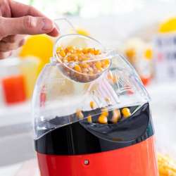 ¡Descubra la máquina casera de palomitas de aire caliente! Lista para seducirte, se cuela fácilmente en tu cocina.