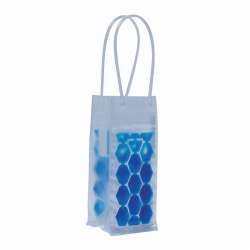 Saco isotérmico transparente con dos asas. Ideal para mantener tus bebidas frías durante más tiempo. Coloca el saco en el congelador antes de usarlo para lograr el máximo efecto. Acepta botellas de hasta 1 litro.