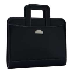 Porte-documents NOBLESSE RING format DIN-A4 en simili-cuir de qualité: Avec fermeture éclair, classeur 4 anneaux, calculatrice, bloc d´écriture, passant pour un stylo, poches diverses, poignée pliable, coutures blanches, plaque métal pour gravure.