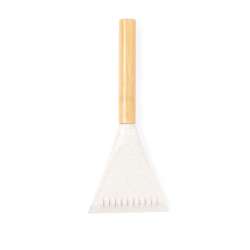 Con forma de pala, su mango es de bambú y la zona de raspado está hecha de caña de trigo. Incluye una parte limpiadora y una sierra integrada.