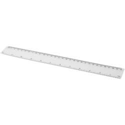 Regla flexible de plástico ligero. Medidas en pulgadas y centímetros.