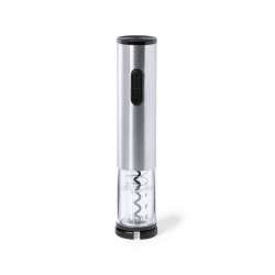 Abridor de vino eléctrico en acero inoxidable y ABS resistente. Incluye un cortacápsulas para mayor comodidad.