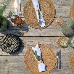 Base de plato redonda de 35 cm en jonc de mar.Perfecta para cualquier mesa, combina estilo y funcionalidad.