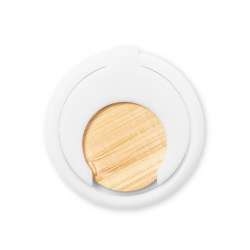 Fabricado en ABS resistente, con un acabado blanco elegante. Viene con una moneda de bambú.