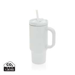 Incluye una tapa a rosca que evita derrames. Puedes beber directamente o usar la pajita de plástico reciclado con un suave extremo de silicona.