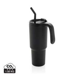 La cómoda asa facilita el transporte, y su base ajustada encaja en la mayoría de los portavasos de coche.