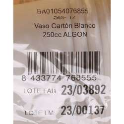 Lote de 12 vasos de cartón blanco de 250cc.